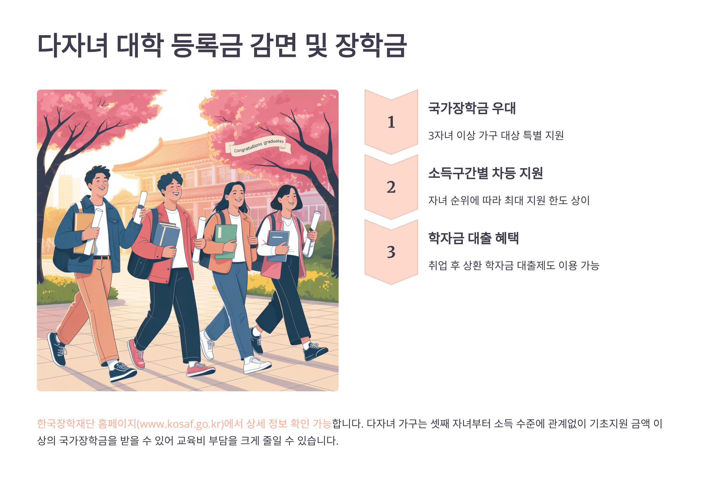 다음은 다자녀 가구에게 꼭 필요한 교육비 절감 제도! ‘대학교 등록금 감면 및 장학금’ 혜택으로 이어집니다 🎓