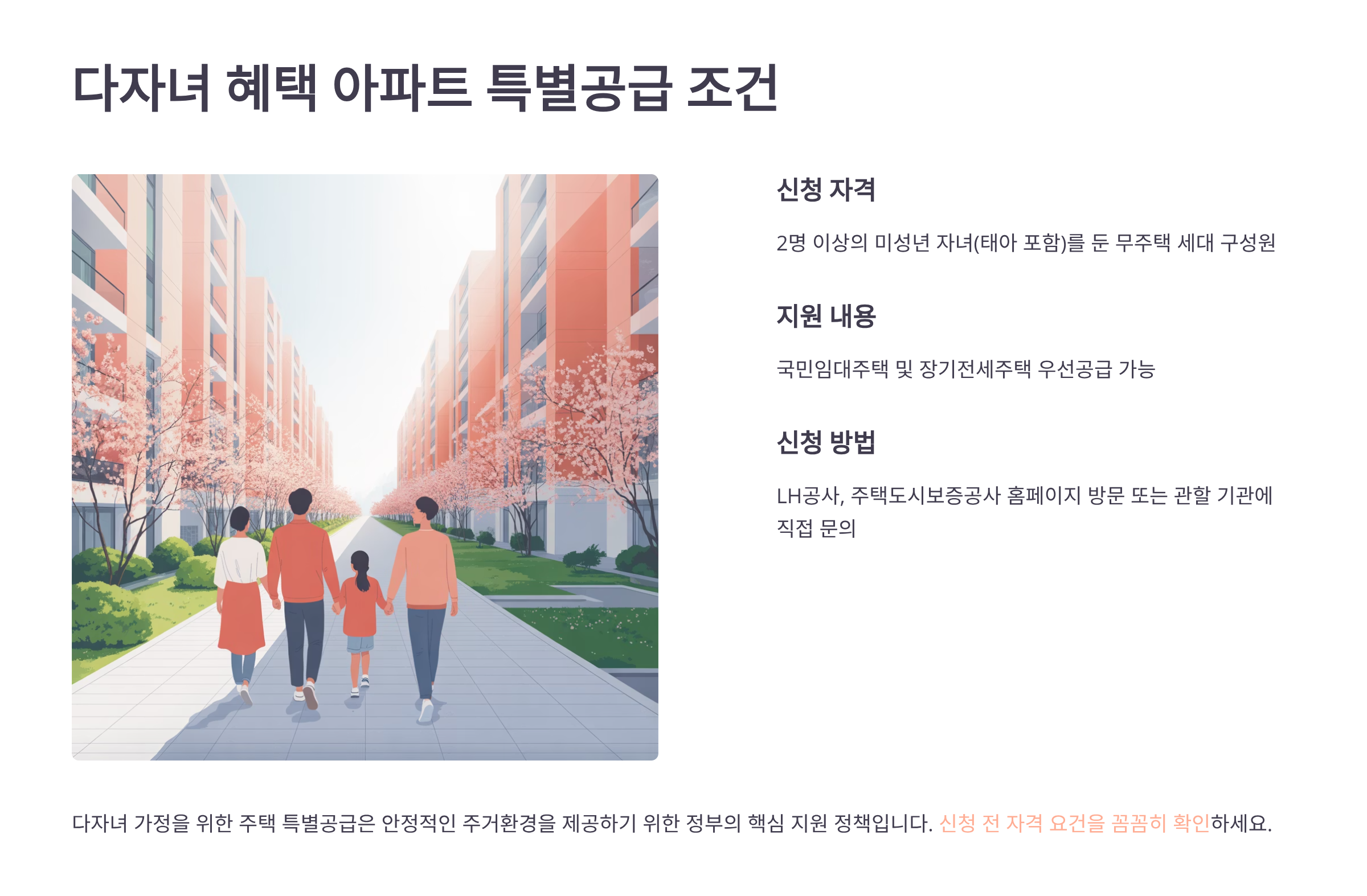 ✔️ 놓치면 후회하는 팁! 신청 전에 주민등록등본과 가족관계증명서 준비해두는 게 좋아요. 공고일 기준으로 자녀 연령, 거주 요건이 결정되니까요.