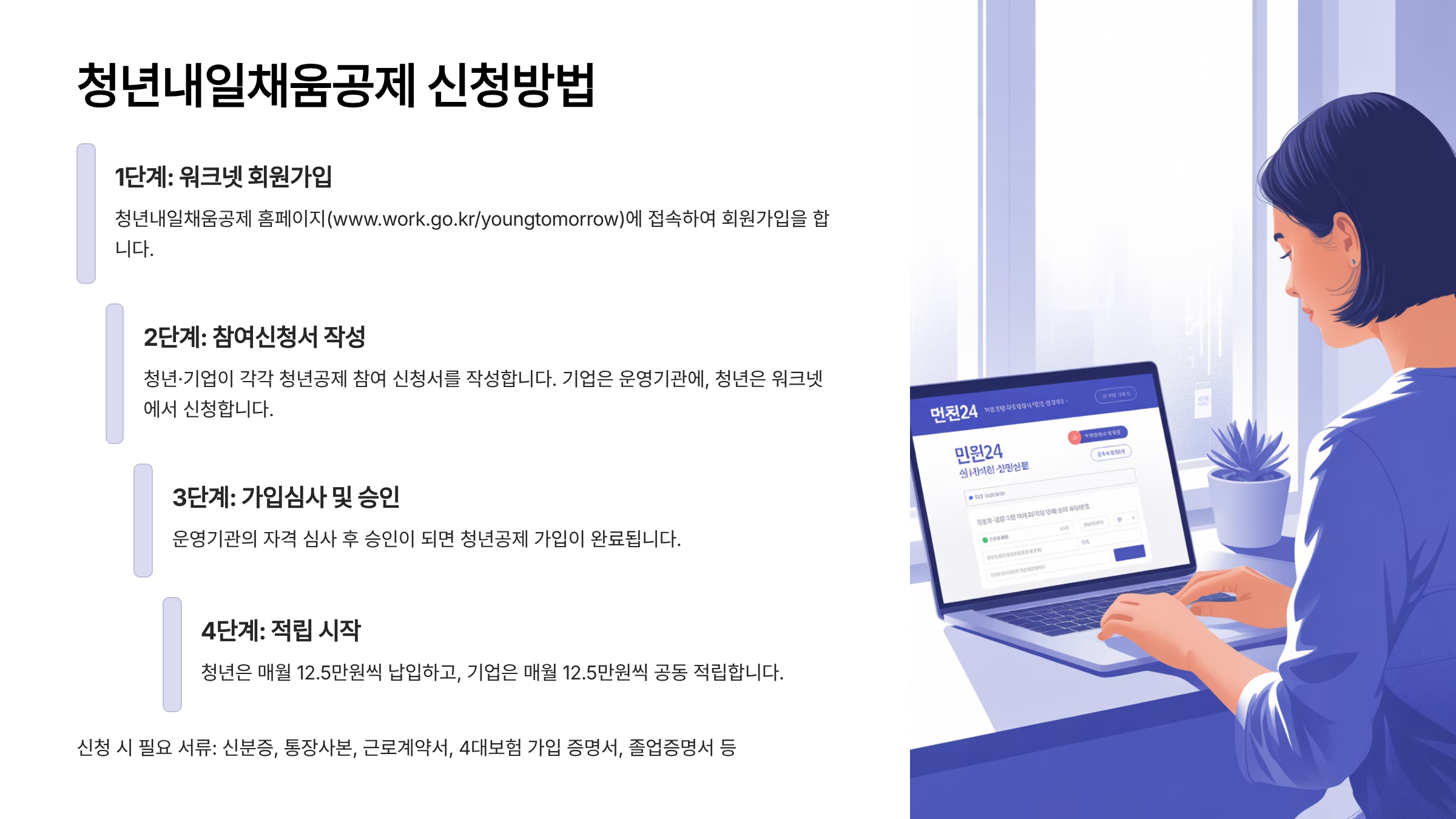워크넷, 청년내일채움공제, 고용노동부 사이트를 통해 쉽게 신청할 수 있어요. 아래 링크에서 직접 확인해보세요!